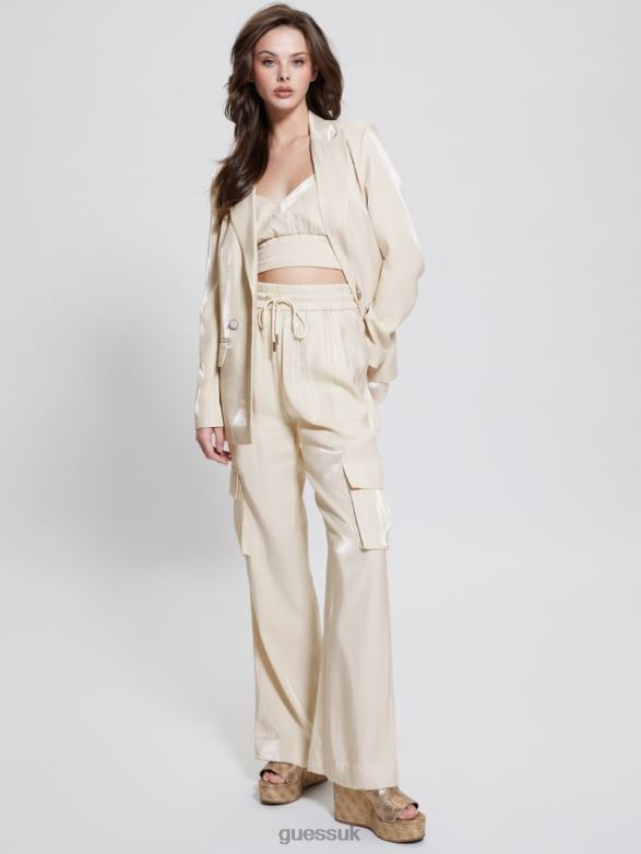GUESS Women Eco Adriana Satin Blazer Cemento Multi Apparel V28V61728