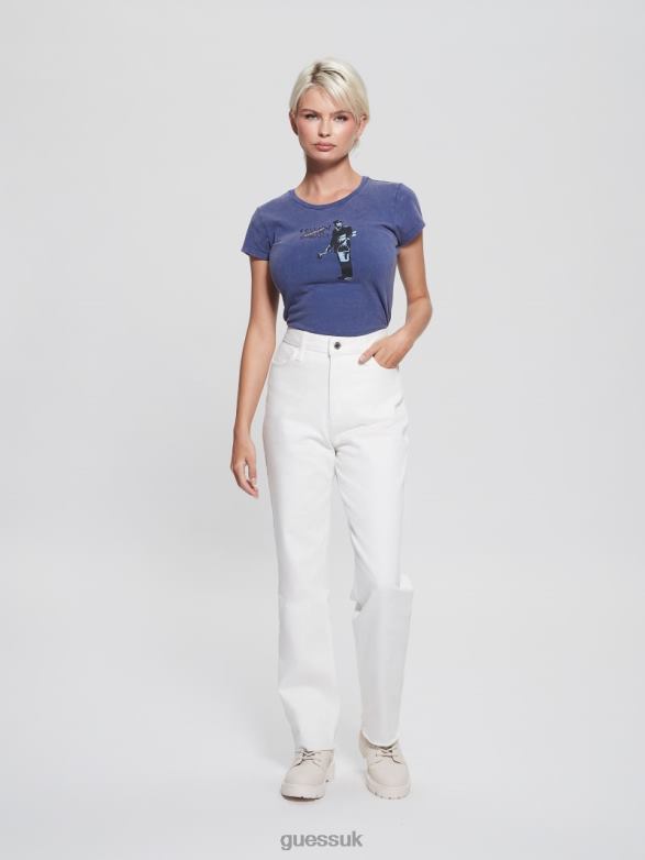 GUESS Women Canceled Dreams Tee Passion Blue Apparel V28V61502